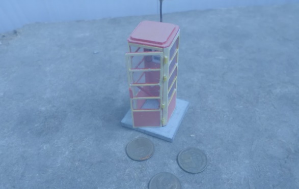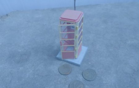 Первая телефонная будка была похожа на простую коробку, сделанную из бетона. Крыша имела пирамидальную форму, а её верхушку украшал шпиль. Кремового цвета будка не пришлась по душе гражданам, поскольку выглядела слишком просто и неприметно. После недовольства населения будку решили изменить и переделать.