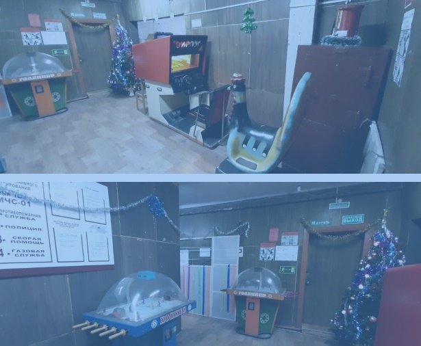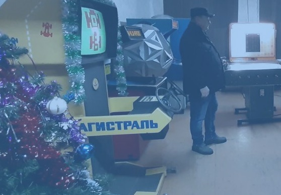 Вот такие автоматы есть при входе. Несколько детских качалок, «Вираж» и парные автоматы: «Хоккей» и «Голкипер».